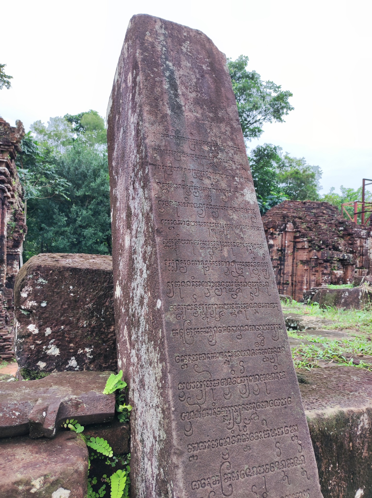 Aquí también descubrimos unas piedras llamadas yoni y otras llamadas lingas, que simbolizan la fertilidad (formas muy explicitas de las piedras. El yoni y la linga son piedras que van unidas entre sí. Cada yoni tiene su pareja linga, de forma que no puedes unirlas si no son las parejas creadas para tal efecto. En este primer complejo se puede entrar a los templos y un almacén antiguo y ver alguna escultura, aunque mayoritariamente todas las buenas fueron expoliadas por los franceses y llevadas a Francia, y otras pocas se llevaron al museo Cham de Da Nang. Por eso cuando entramos a los edificios podemos ver que están prácticamente vacíos, excepto alguna yoni, o bombas que cayeron durante la guerra, o alguna estatua de dioses hindús de menos calidad. Antes de continuar con el recorrido el guía nos lleva de regreso a donde hay un escenario cubierto ya que hay un espectáculo de danza y música basado en los Cham (la cultura que creó estos edificios). Así que, aunque no lo teníamos previsto, al final tuvimos espectáculo de baile y música en directo. Otro día visitaríamos el museo Chan en Da Nang y veríamos que las bailarinas llevaban la misma ropa y tocados que las figuras de los templos (solo que en My Son no están muy bien conservadas y donde mejor se ven son en las que se llevaron de My son y de otros lugares de Vietnam al museo Cham). Los Cham son descendientes de navegantes malayo-polinesios de Borneo. El reino de Champa ocupó, bajo la forma de ciudades-estado, el centro de Vietnam, donde la capacidad comercial proporcionó los recursos necesarios para la prosperidad de su cultura. Alrededor de las ciudades, los reyes Cham pudieron construir y embellecer templos, donde se veneraron a múltiples dioses de las religiones hindús.